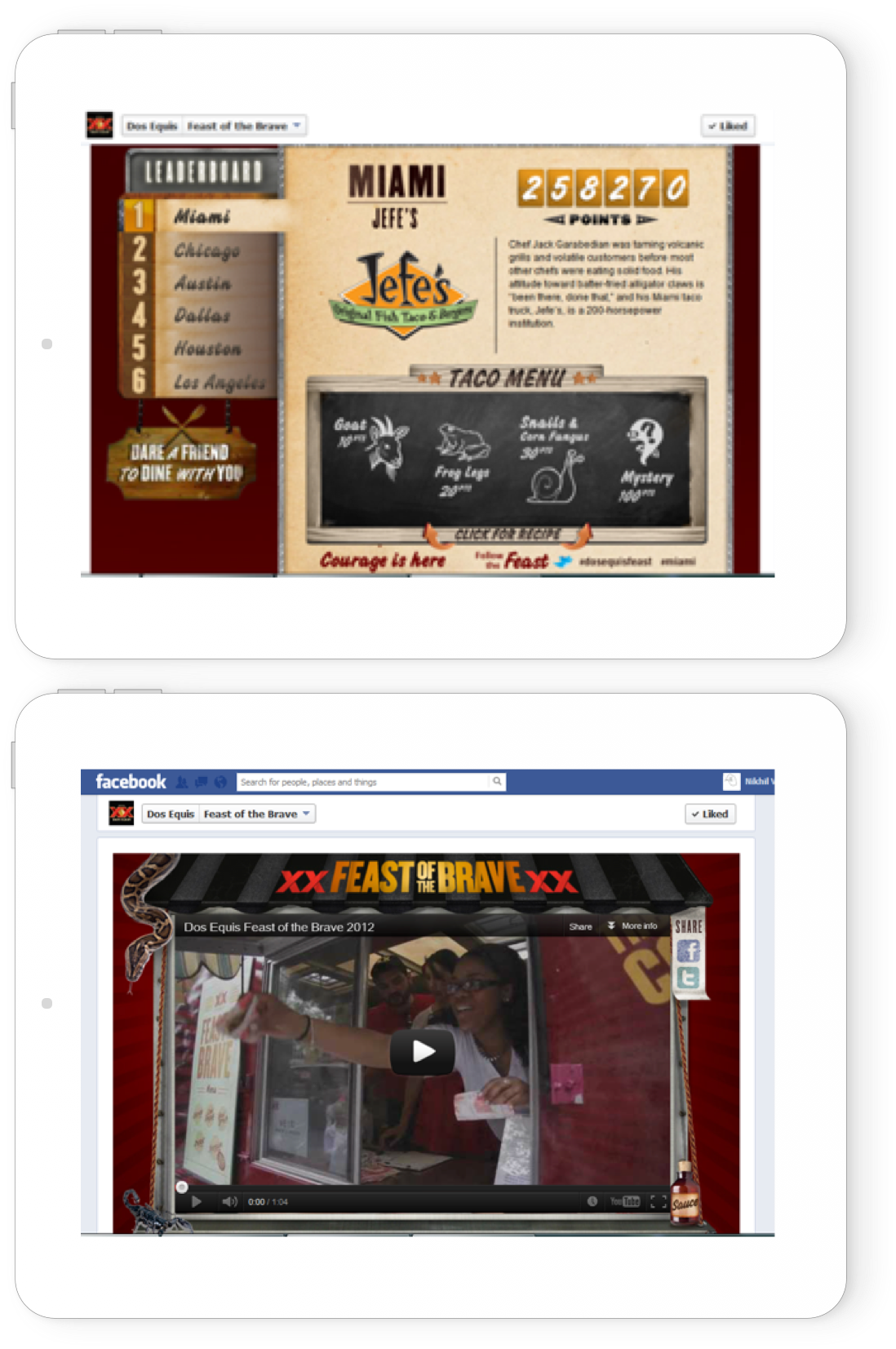 Partnering with Havas, Dos Equis launched “Feast of the Brave”, a multi-city taco truck campaign where participants could sample exotic meats like cow brain, scorpion, and pigs’ feet. In return, they earned points for their city in a battle to be crowned “The Bravest City.”